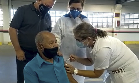 A primeira pessoa a ser vacinada, contudo, foi a pé ao shopping. José Hercílio Prudêncio, de 88 anos, foi atendido com outros idosos às 9h. Pouco depois, começaram a chegar os carros para o atendimento de mais de 30 profissionais da Fundação Municipal de Saúde (FMS), mobilizados para o dia especial.