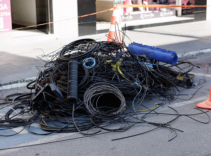 A primeira operação de retirada de fios obsoletos em Tubarão resultou na remoção de aproximadamente 10 mil metros de cabos em apenas dois trechos: um em parte da rua Lauro Müller e outro na rua São Manoel (Calçadão).