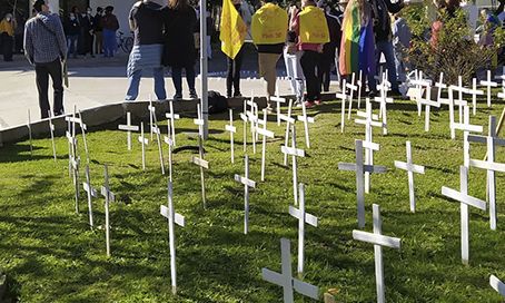 Em Tubarão, cruzes simbolizando vítimas da pandemia foram colocadas em frente ao museu