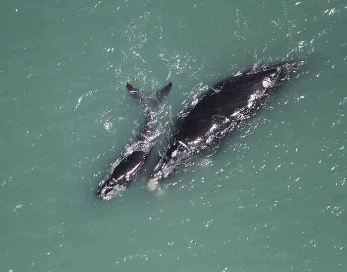 Entre as baleias identificadas nesta temporada, estão Zimba e Olívia, já registradas em sobrevoos anteriores.