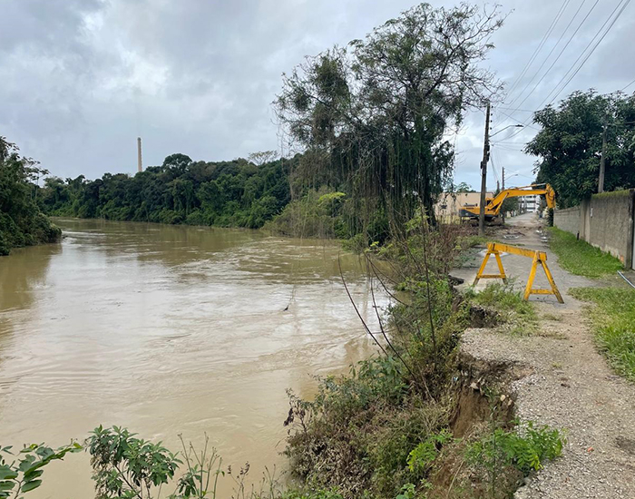 Com a enchente de maio de 2022 o nível do rio subiu e fez desmoronar a encosta na Rua Vandio Mário da Silva.