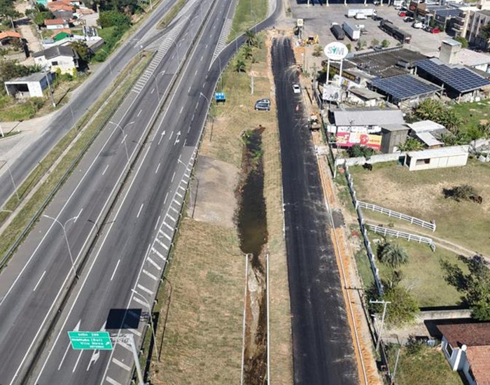 As obras nas marginais e acessos da BR-101 Sul, em Imbituba, avançam com o objetivo de melhorar o fluxo de tráfego na região.