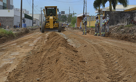 A frente de trabalho mais movimentada está no cruzamento das ruas Uruguai e Norberto Pacheco, com o rebaixamento da estrada, preparação de sistema de drenagem e terraplanagem.