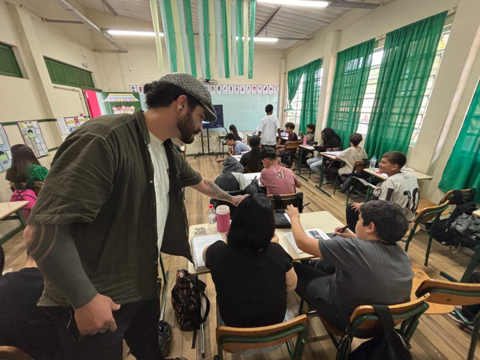 O projeto Ciclo de Oficinas: Poesia Visual levou oficinas gratuitas a escolas públicas a Gravatal, estimulando a criação poética a partir do diálogo entre palavra e imagem.