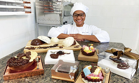 Os ovos artesanais feitos por Bruna são produzidos numa cozinha que a confeiteira adaptou em sua casa. “Estamos na correria até domingo. Em média, serão entregues cerca de 80 ovos de chocolate. Minha maior satisfação é ver a alegria do cliente quando ele manda mensagem falando que gostou”, destaca a confeiteira.