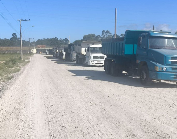 Os trabalhos de pavimentação no acesso à Praia do Sol, em Laguna, foram reiniciados ontem. A retomada havia sido anunciada no domingo por representantes da Qualidade Mineração, responsável pela execução do serviço.