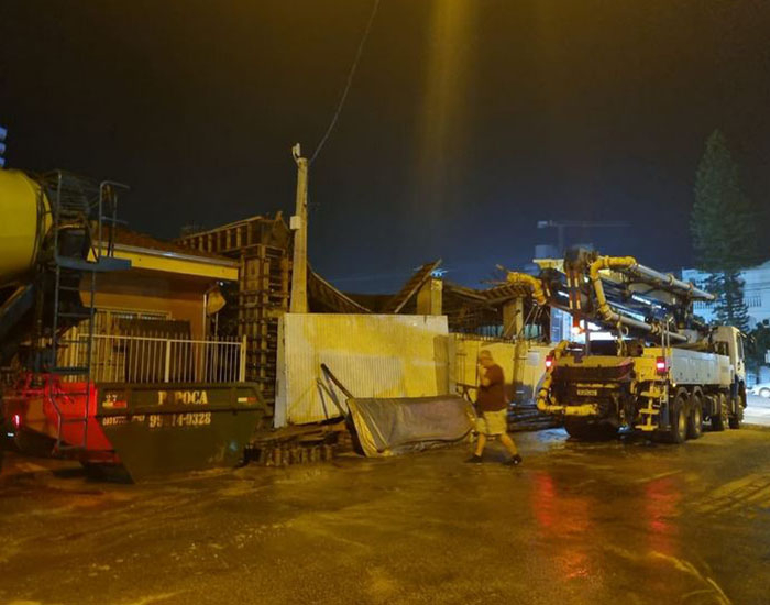 A laje de um prédio em construção desabou no começo da noite de ontem, em Laguna. Trabalhadores atuavam na concretagem da estrutura, quando ela cedeu. As primeiras informações são de que três pessoas ficaram feridas, sem gravidade.