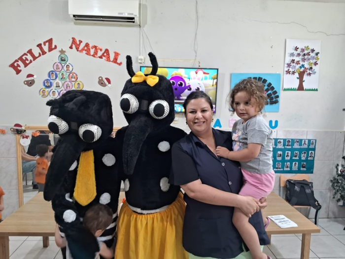 Na creche, os pequenos foram os grandes protagonistas da ação. Além de receberem materiais educativos, as crianças participaram de conversas interativas sobre como identificar possíveis focos do mosquito em suas casas e quintais. Os “mosquitos” destacaram, em tom descontraído, a importância de cada um ser “guardião do meio ambiente”.