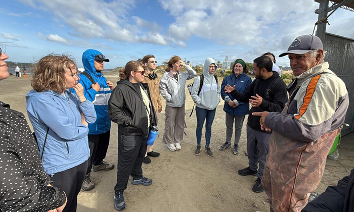 A comitiva, composta por sete estudantes e dois professores das áreas de ciências humanas, biologia e medicina veterinária, está no Brasil para vivenciar experiências únicas de interação entre humanos e a fauna local. Um dos pontos altos do programa é justamente a observação da tradicional pesca com auxílio dos botos, um fenômeno natural que acontece em Laguna. Durante a visita, o grupo pôde acompanhar de perto essa prática que envolve uma colaboração rara entre pescadores artesanais e botos. O pescador conhecido como Safico, um dos mais experientes da região, esteve presente no local. Ele compartilhou histórias, tirou dúvidas e relatou sua vivência diária com os botos, encantando os visitantes com seu conhecimento e carinho pela atividade.