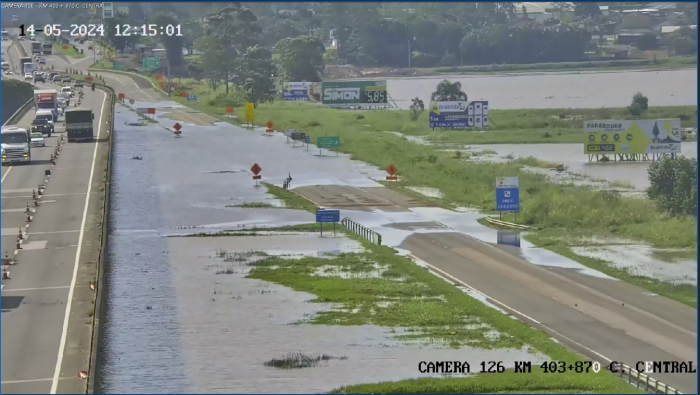 Já no km 407 marginal norte (debaixo do viaduto), o bloqueio é parcial. No km 425, marginal sul, também está com bloqueio parcial devido ao alagamento, segundo a concessionária.