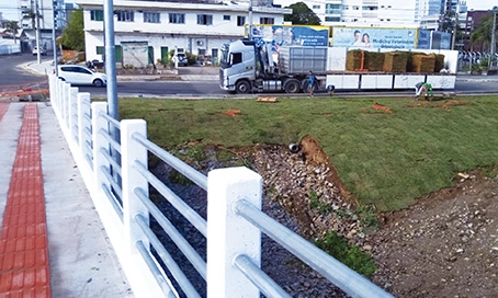 A ponte Prefeito Paulo Osny May, que ligará as ruas Padre Nóbrega (Revoredo) e Uruguai (Vila Moema), em Tubarão, começou a receber os trabalhos de paisagismo nas cabeceiras.