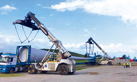 Abner Nascimento/Ds Uma carga de pás eólicas destinadas a Capivari de Baixo foi desembarcada no Porto de Imbituba. Foram duas pás, cada uma com 72 metros de comprimento e pesando 22,5 toneladas. Os equipamentos foram fabricados no Ceará e chegaram ao porto no navio Bartolomeu Dias, integrante da frota de cabotagem do armador Aliança.
