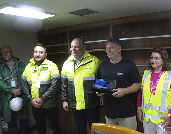 Para marcar o feito, o diretor-presidente da SCPar Porto de Imbituba, Christiano Lopes de Oliveira, entregou uma placa comemorativa ao comandante Marcelo Laurindo Julião, durante cerimônia a bordo.