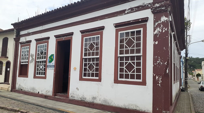 Foto: Luís Claudio Abreu/Agora Laguna/DS Um dos prédios mais antigos do Centro Histórico de Laguna será leiloado pelo governo do Estado. O edifício do antigo Sine, localizado na Praça República Juliana, terá sua venda realizada no próximo dia 21.