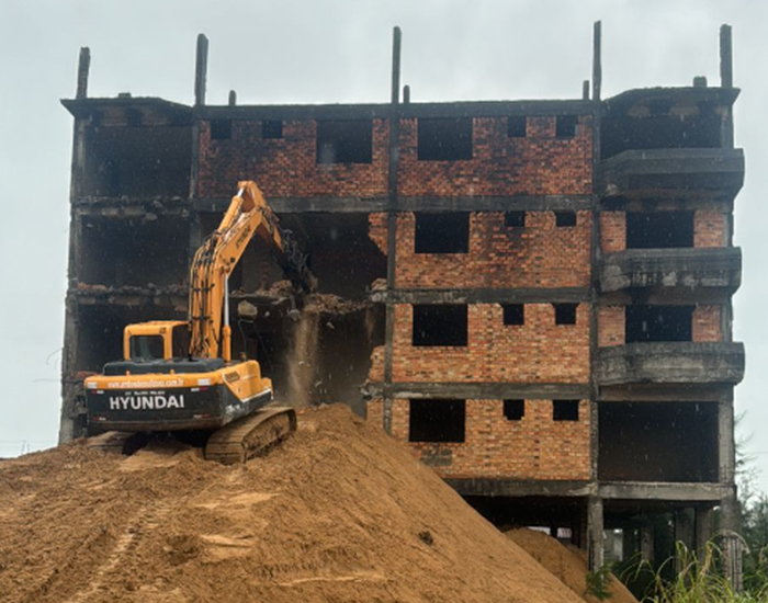 Após 27 anos de abandono e riscos à segurança, um prédio inacabado no Balneário Camacho, em Jaguaruna, começou a ser demolido. A estrutura, erguida em 1993 e abandonada desde 1998, estava deteriorada e oferecia risco iminente de colapso, ameaçando diretamente 12 famílias vizinhas e colocando em perigo turistas e curiosos que acessavam o imóvel, mesmo interditado.