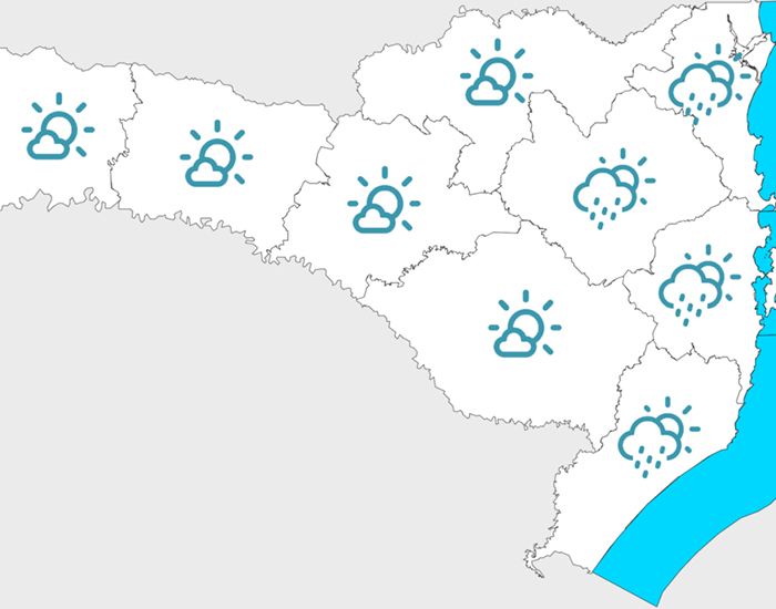 O dia de hoje começa com tempo estável em grande parte de Santa Catarina, mas a circulação marítima mantém condição para chuva fraca no Litoral e em parte do Vale do Itajaí, principalmente no início e no fim do dia, de acordo com a Defesa Civil.