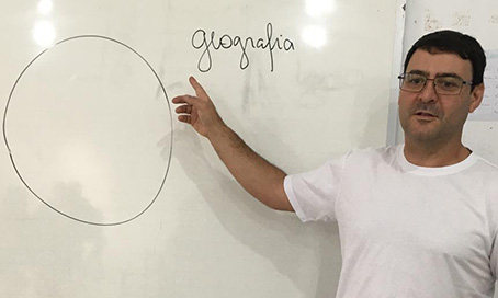 André tem 42 anos e leciona geografia para estudantes do sexto ao nono ano do fundamental, na Escola de Educação Básica José Cardoso de Aguiar, em Gravatal. O gosto pela disciplina surgiu ainda no ensino médio, através do seu professor, e o interesse pela educação ficou claro em sua passagem pelo seminário. Já são 19 anos de profissão.
