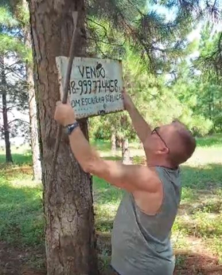 Como protesto, o proprietário arrancou a placa que divulgava a venda do imóvel e documentou. “Tem compradores interessados, chega aqui com essa situação e a pessoa vai embora”, destacou.