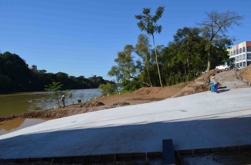 A rampa da margem direita tem 15m de largura por 25m de comprimento. O espaço será utilizado para a prática de esportes náuticos da população e ações do Corpo de Bombeiros Militares e da Defesa Civil. Na primeira quinzena deste mês, a empreiteira responsável pelas obras concretará o acesso à rampa, vai implantar as canaletas de drenagem e providenciar o paisagismo.