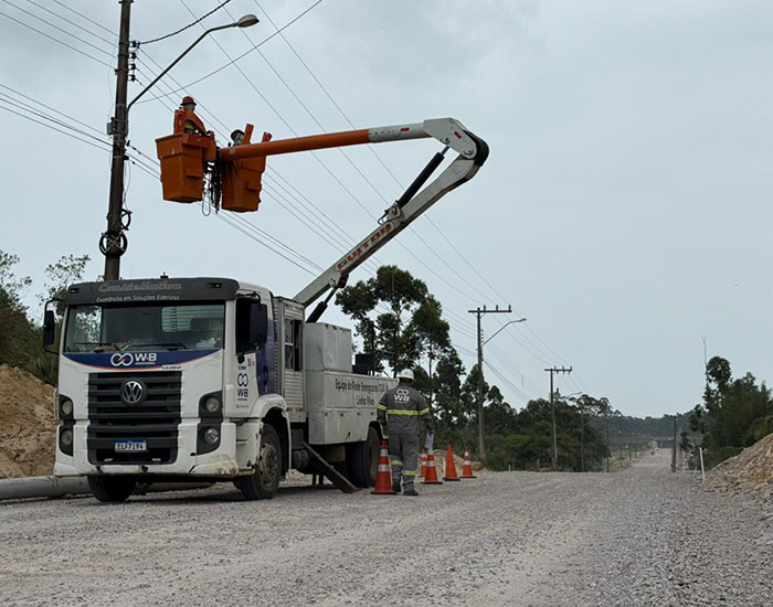A obra de pavimentação asfáltica da Praia do Sol, em Laguna, avançou mais uma etapa ontem, com o início da realocação dos postes de iluminação pública no trecho que receberá o asfalto. De acordo com a secretaria de Planejamento, o objetivo é finalizar o serviço em até três dias. Os trabalhos são executados pela empresa W&B Serviços Elétricos, homologada junto à Celesc.