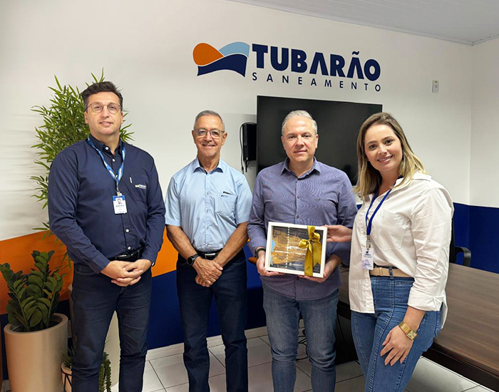 A Tubarão Saneamento recebeu ontem uma placa de reconhecimento pela parceria no projeto “Arte Sobre Tela”, iniciativa cultural voltada a crianças e adolescentes em situação de vulnerabilidade social. A homenagem foi entregue pela Combemtu, em agradecimento ao apoio da empresa, que contribuiu diretamente para a realização das atividades.