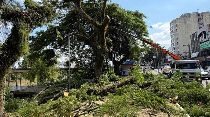 No mesmo local, foram identificadas algumas árvores de grande porte com a base comprometida, como troncos ocos. Como medida preventiva, a prefeitura realiza a remoção delas, juntamente com o trabalho de proteção do entorno.