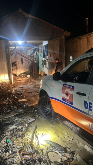 A região é uma das mais afetadas pela atuação de um ciclone extratropical na costa que trouxe ventos com mais de 80Km/h. Segundo a Defesa Civil municipal, foi necessário quebrar paredes de ranchos de pesca para salvar oito embarcações.
