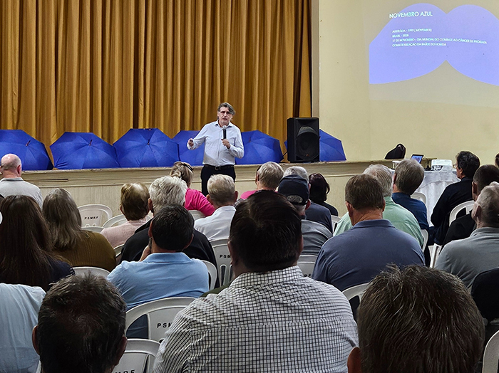 O Centro de Pastoral São Marcos, em Rio Fortuna, foi palco de um encontro especial voltado à saúde do homem, em alusão à campanha Novembro Azul. Mais de 100 participantes acompanharam a palestra ministrada pelo médico urologista Francisco Ribas Marconato, que abordou a importância da prevenção e do diagnóstico precoce das doenças da próstata, além de destacar cuidados essenciais com a saúde masculina de forma geral.