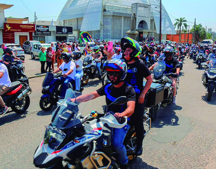 Após a missa, os motociclistas iniciaram o percurso pelas principais vias da cidade, formando um cortejo que chamou a atenção de moradores e visitantes. A romaria foi acompanhada por equipes da Polícia Municipal e da Polícia Militar, com o apoio da Rocam e do Grupamento de Motos da PMTB, que atuaram para garantir a segurança, o controle do trânsito e o bom andamento do evento.