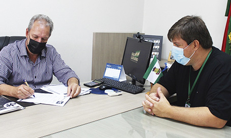 O prefeito de São Ludgero, Ibaneis Lembeck, o Iba, e o secretário de Administração, Finanças e Planejamento, Léo Füchter, assinaram a lei complementar nº 259/2021, que concede a reposição.