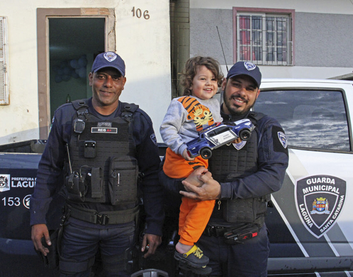 Em Laguna, a Guarda Municipal participou de um momento emocionante: o aniversário de 3 anos do pequeno João Pedro.