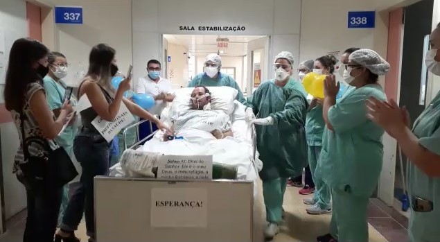 Além de médicos e enfermeiros, o trabalho conjunto da nutricionista, do fonoaudiólogo e da fisioterapia foi essencial nas etapas de recuperação. Ele também recebeu os aplausos e a comemoração de familiares e da equipe assistencial pela vitória.