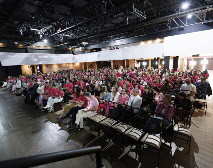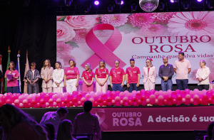 O evento de abertura reuniu centenas de participantes, muitas vestidas de rosa, simbolizando o engajamento coletivo na luta contra o câncer de mama e do colo do útero.