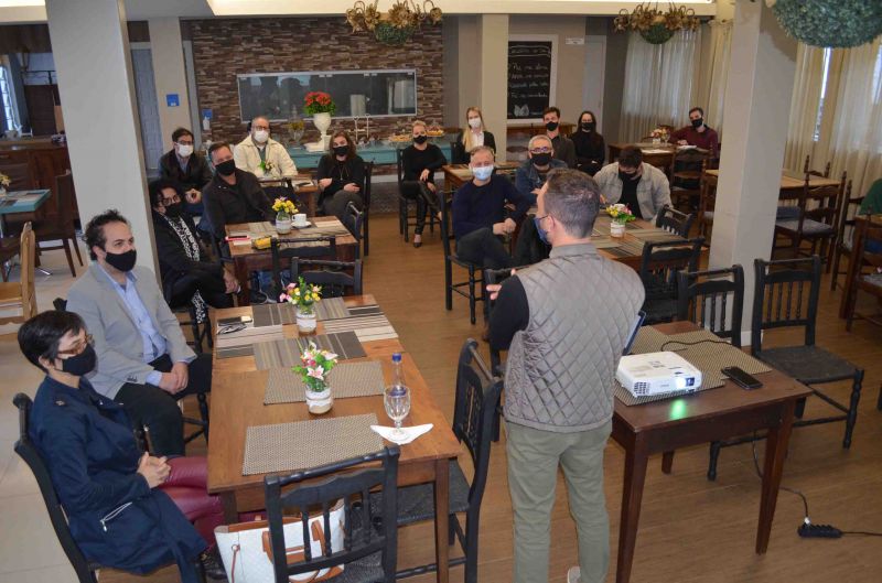 A palestra foi conduzida pelo coordenador de Turismo do Sebrae SC e que lidera os projetos de Indicação Geográfica em Santa Catarina, Alan Claumann.