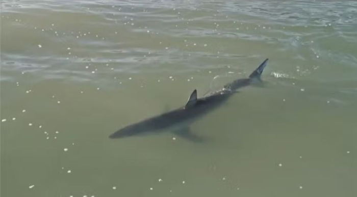 Animal foi flagrado na Praia da Vila e trata-se de espécie conhecida como tubarão-mako