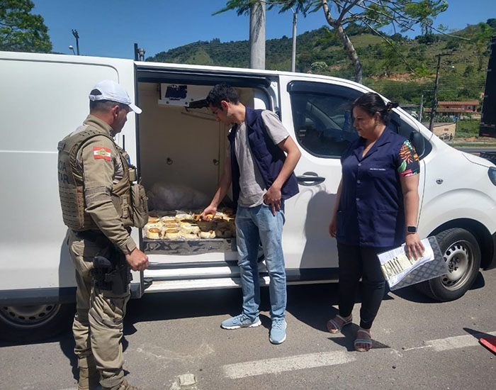 Numa operação conjunta, a Polícia Rodoviária e a Vigilância Sanitária de Gravatal apreenderam uma carga de produtos lácteos transportados de forma irregular.