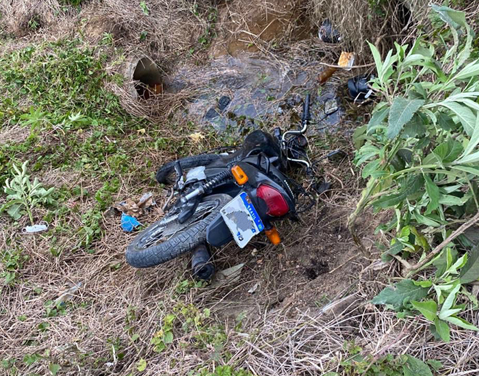 De acordo com os Bombeiros Voluntários, um dos homens foi encontrado caído próximo à moto, com ferimentos no ombro esquerdo, perna direita e região genital. A outra vítima, de 55 anos, estava sentada, relatando dores nos arcos costais e falta de ar.