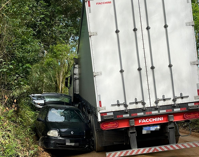 Uma colisão lateral entre um carro e um caminhão deixou duas pessoas feridas ontem pela manhã, na Estrada Geral do Barracão, em Orleans. O acidente ocorreu por volta das 7h50. O condutor e a passageira do automóvel foram atendidos pelo Corpo de Bombeiros Militar e levados à Fundação Hospitalar Santa Otília para avaliação médica.