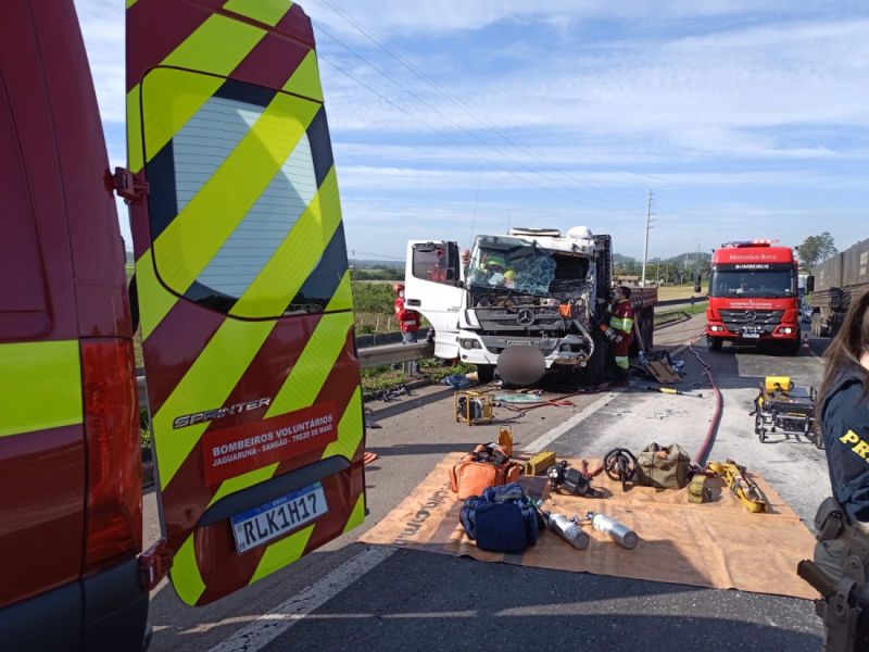 Os Bombeiros Voluntários informaram que o condutor do Mercedes Atego, de 41 anos, ficou com as pernas presas nas ferragens. Foi necessário o uso de ferramentas hidráulicas para a liberação. Depois, ele foi imobilizado e encaminhado ao Hospital de Caridade, em Jaguaruna.