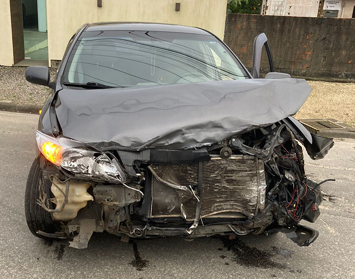Uma colisão entre um Toyota Corolla e um caminhão foi registrada na rodovia Arno Arnaldo Napoli, no bairro Encruzo, em Jaguaruna.