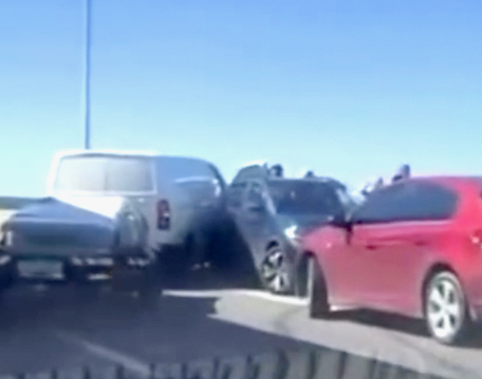 Na BR-101, em Laguna, por volta das 10h50, a Polícia Rodoviária Federal (PRF) atendeu uma colisão traseira entre um automóvel e um furgão no km 312 da BR-101, na altura da Ponte Anita Garibaldi. Uma pessoa ficou levemente ferida.