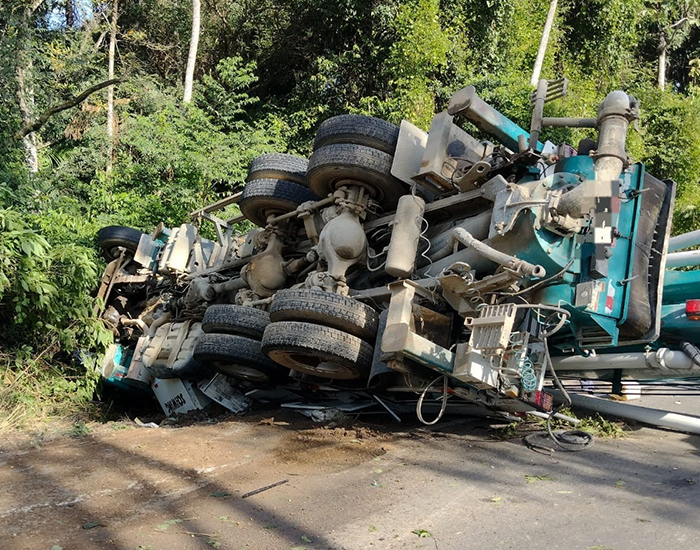 De acordo com os bombeiros, o condutor do caminhão foi socorrido pelo Samu e encaminhado ao hospital