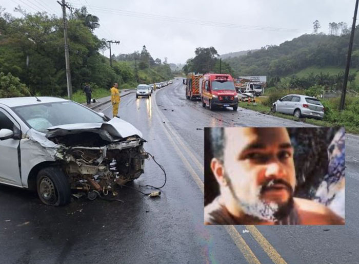 Um homem morreu em um grave acidente envolvendo três veículos na tarde de sábado, na SC-370, em Braço do Norte, nas proximidades do bairro Rio Bonito. A colisão envolveu um Chevrolet Onix, um Gol prata e um Fiat Uno.