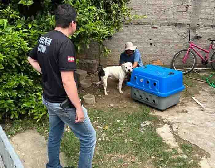 O cão não se encontrava castrado, “havendo fortes indícios de que era usado para procriação e venda de filhotes”, detalhou a polícia. O responsável pelo cão recebeu voz de prisão em flagrante e foi encaminhado ao presídio.