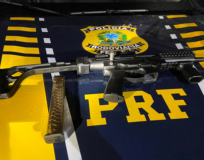 A arma, feita através de impressora 3D de alta resolução, estava na mochila do passageiro de um carro utilizado para viagens por aplicativo. O garoto, de 17 anos, informou aos PRFs que havia sido enviado pelo padrasto para buscar a submetralhadora em Florianópolis. A arma seria entregue em Rio Grande (RS).