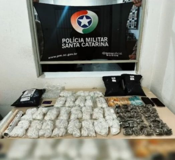 A Polícia Militar apreendeu neste sábado um casal de adolescentes por tráfico de drogas em Tubarão.