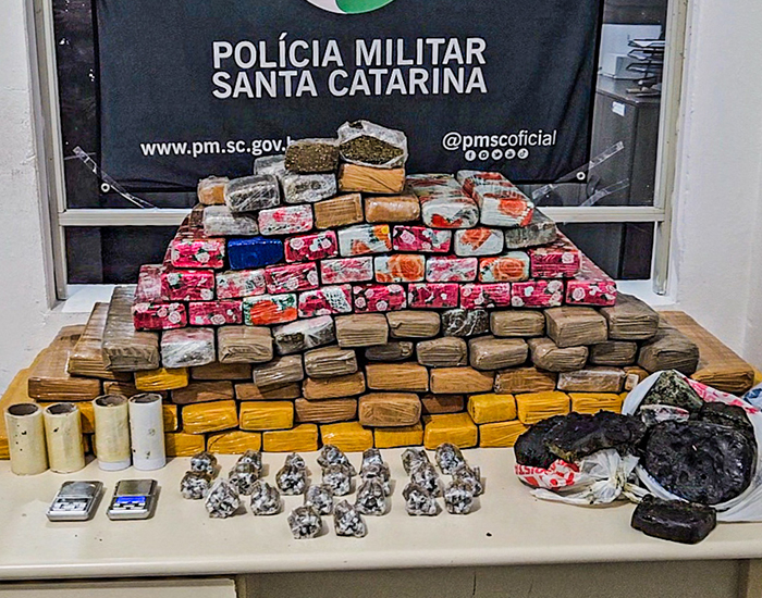 O homem também confessou possuir mais drogas em sua residência. Os policiais se deslocaram até o endereço, onde encontraram mais 89,84 kg de maconha, 4,13 kg de haxixe, duas balanças de precisão e plásticos utilizados para embalar drogas.