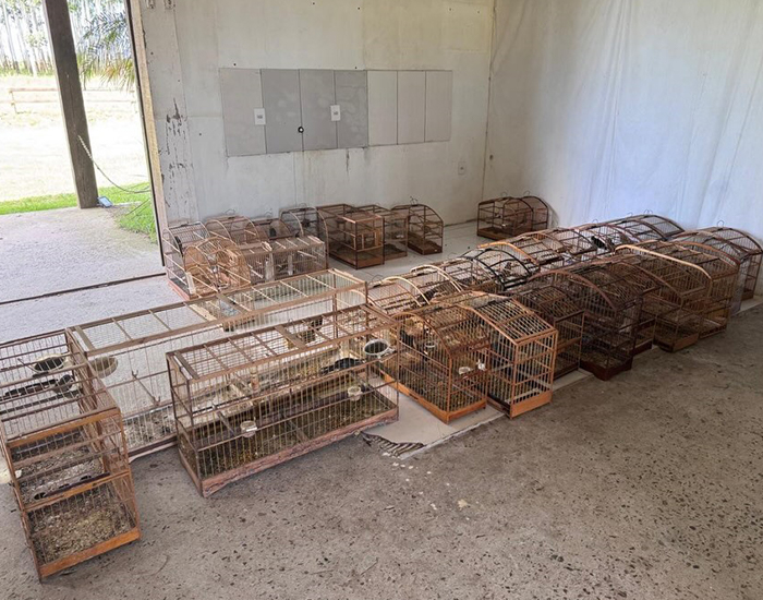 Os animais foram resgatados na localidade de Encruzo, em São João do Sul, após denúncia de manutenção irregular de aves silvestres em cativeiro. No imóvel, os policiais encontraram diversas gaiolas penduradas em um galpão e confirmaram a criação sem autorização legal.