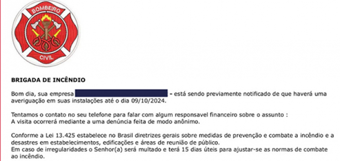 Em alguns casos, estão sendo enviados boletos anexos buscando o recolhimento indevido de valores, utilizando a corporação de maneira leviana. O falso e-mail informa que a empresa da vítima passará por uma suposta averiguação e cita uma lista com possíveis irregularidades, dizendo que já tentaram contato com o responsável financeiro, sem sucesso.