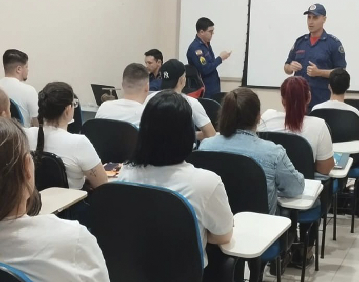 A primeira aula foi sobre legislação e regulamentos, ministrada pelo sargento Jesus. O capitão Henrique Schuelter, comandante local, deu boas-vindas aos alunos.